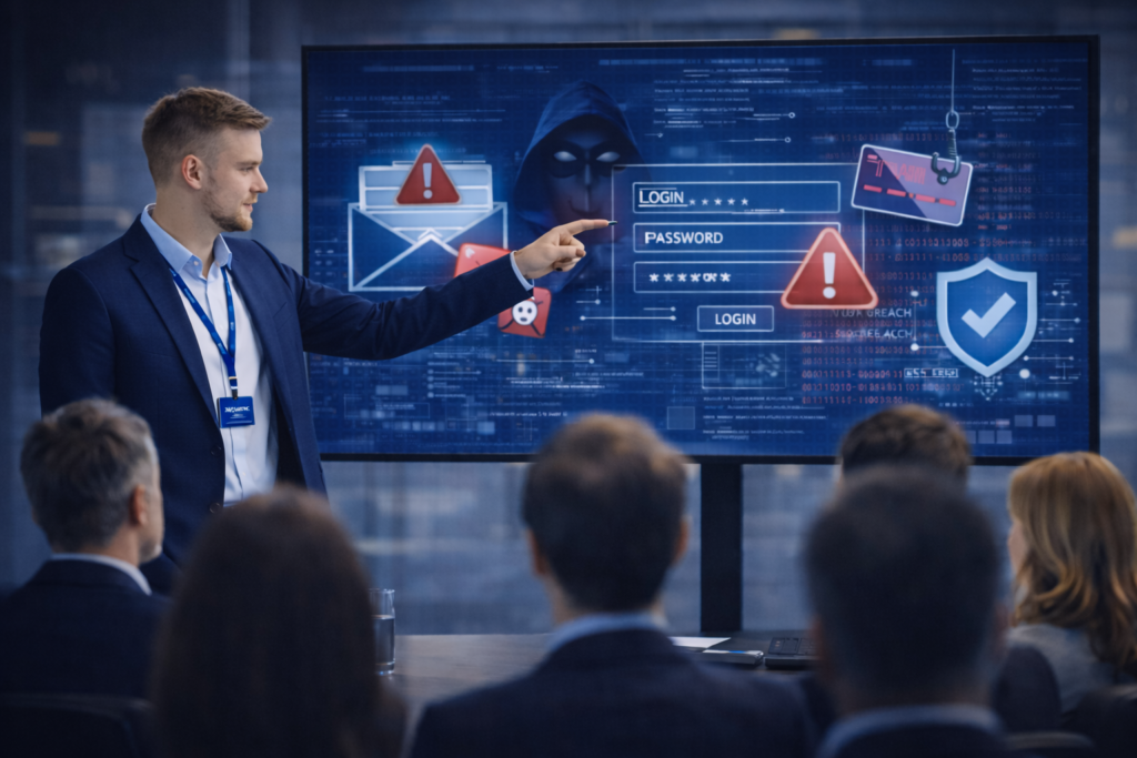 Infoturbe juhtimissüsteem ei tööta ilma inimesteta. Koolitame võtmerolle, toetame sisekontrolli ja siseauditi loogika ülesehitamist ning viime organisatsiooni auditivalmiduseni – olgu selleks E-ITS või ISO 27001.